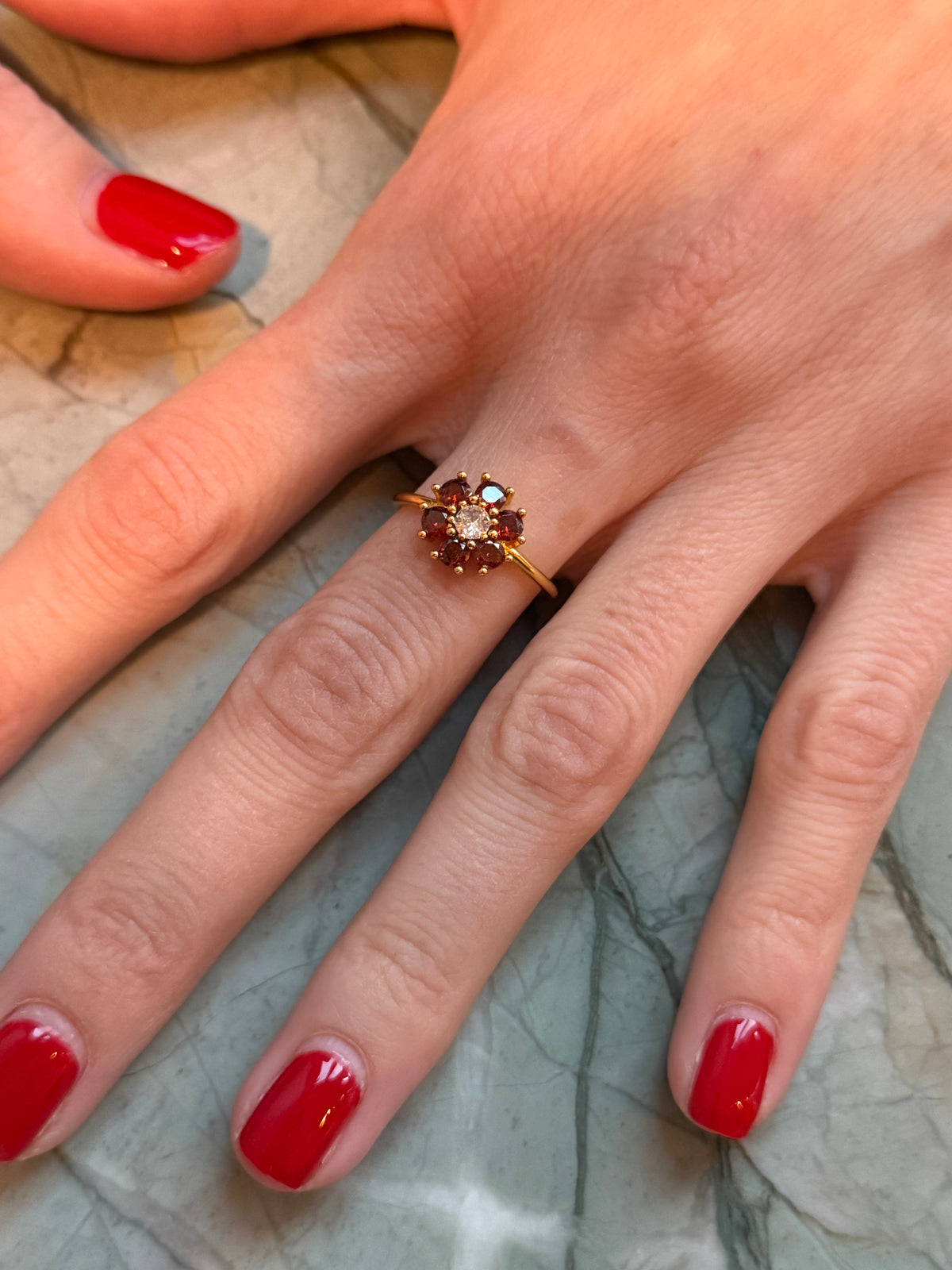 The Red Daisy Cluster Ring