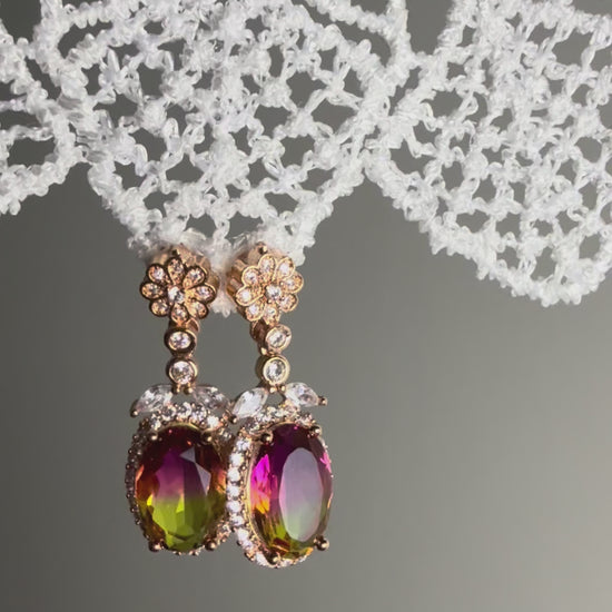 Introducing the California Sunset Rose Gold-Plated Zircon Earrings. These bi-color, ice-flower-cut zircons will be your pocket-sized sunset moment 🌅✨